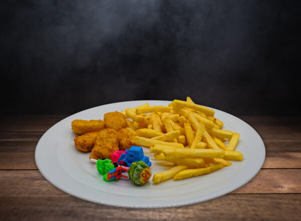 saftiger Rindfleischburger mit Salat und Ketchup, dazu Pommes frites